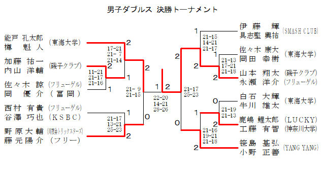 | ²X–Ø N‘å ‰ª“c KŽ÷ (“ŒŠC‘åŠw) | › 21- 9 21-17 | @ | › 21-16 21-16 | ‚P |