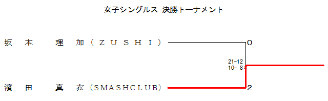 | 坂本 理加 (ZUSHI) | ○ 21-14 21- 8 | ○ 21-15 14-21 21-19 | ○ -X -X | 1 |
